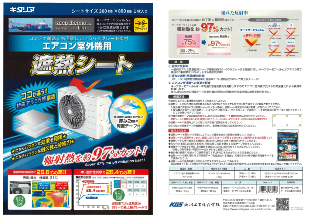 北川工業 エアコン室外機用遮熱シートのお知らせ